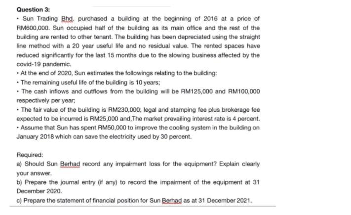 Solved Question 3 Sun Trading Bhd Purchased A Building Chegg Com